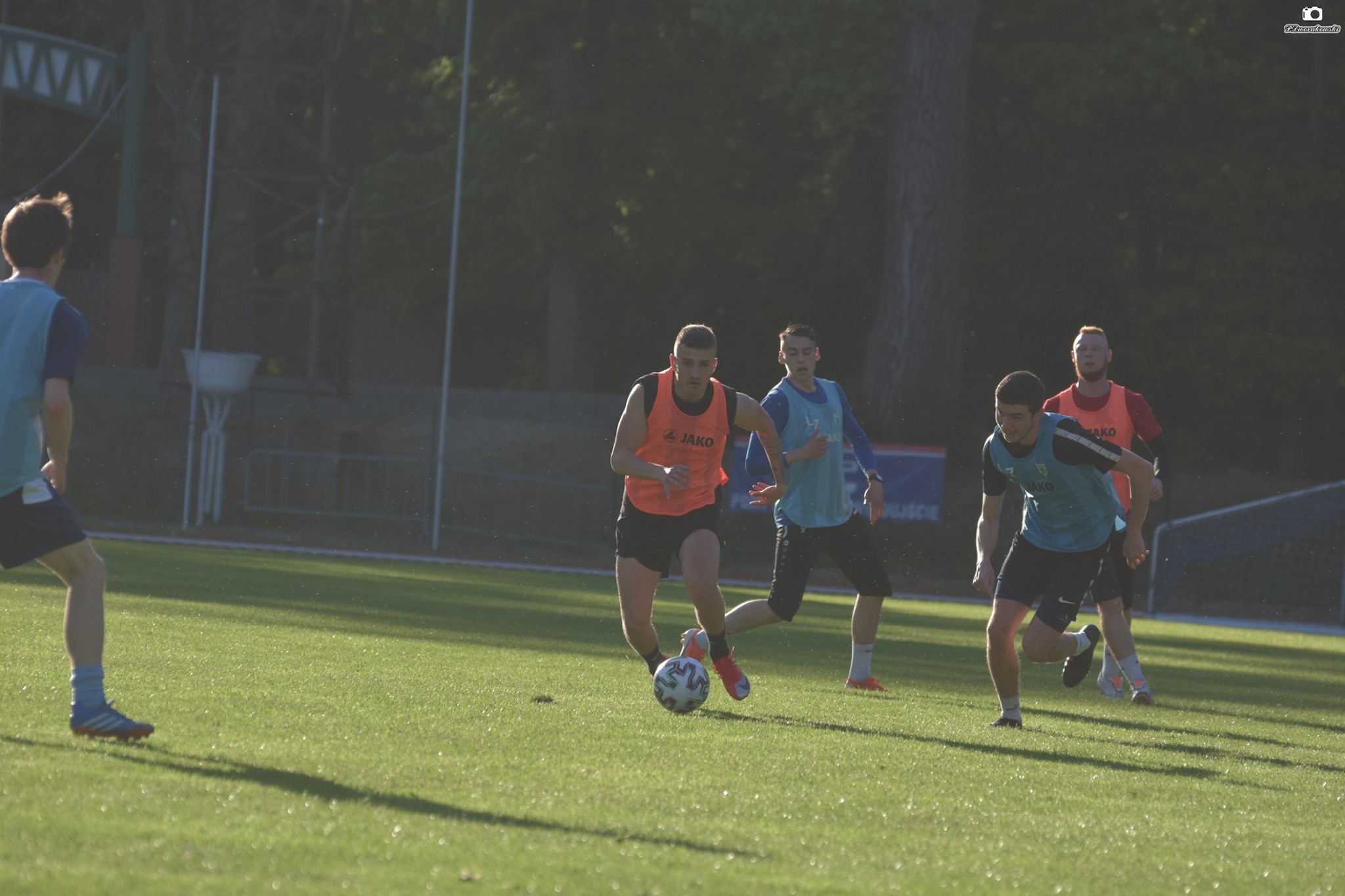 Piłkarze pierwszego zespołu odbyli dziś pierwszy po przymusowej przerwie trening. Trenowało 16 zawodników, nie uczestniczyli w zajęciach Damian Staniszewski, Maksym Oliinyk i Aleks Poskart. Powrócił do zespołu z wypożyczenia do Prawobrzeża Liam Maćkowski, w zajęciach uczestniczył też junior z południowej Polski. Pod koniec tygodnia odbędą się rozmowy z zawodnikami na temat przedłużenia umów. Następny trening w czwartek.