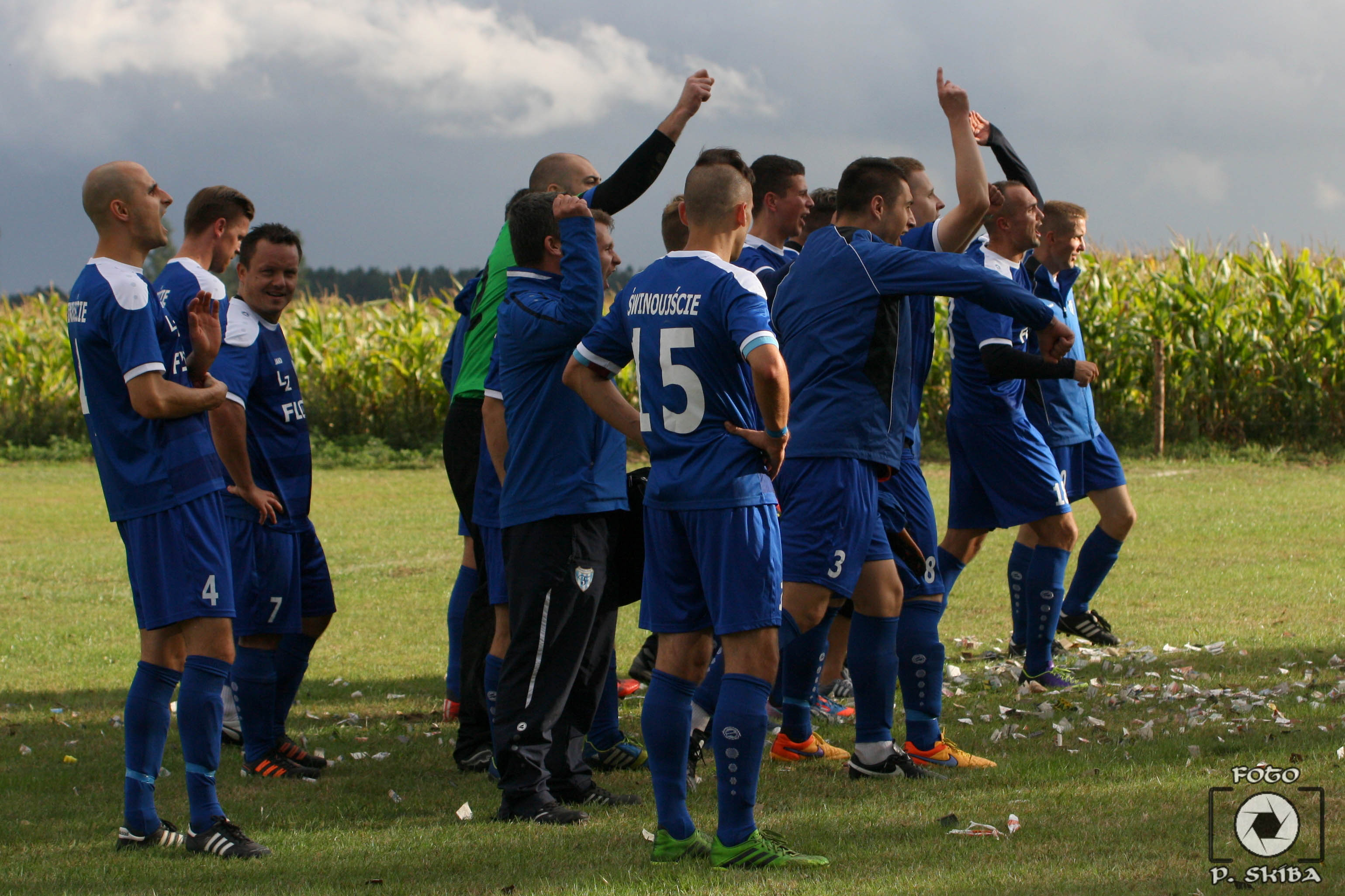 Paweł Stankiewicz - kapitan drużyny. Przeważaliśmy od początku spotkania, szła akcja za akcją, chociaż na początku była chwila rozluźnienia i brak koncentracji, trochę też na początku zawodziła skuteczność, ale zaraz wszystko wróciło do normy. Oczywiście kibice chcą żebyśmy zawsze strzelali powyżej dziesięciu bramek, ale przecież nie każdy rywal jest Orłem Prusinowo, z całym szacunkiem dla niego. Myślę, że każdy trener chciałby wszystkie mecze wygrywać po 8-2. Natomiast jeśli chodzi o rundę, to wszystkie siły szły w kierunku awansu. Na półmetku jesteśmy liderem, czyli na chwile obecną cel można uznać za zrealizowany. Jedynym wypadkiem przy pracy był mecz w Międzyzdrojach, gdzie zdecydował brak zgrania naszej drużyny. Podobnie było w pierwszym meczu ze Zniczem Wysoka Kamieńska, w którym do przerwy przegrywaliśmy 0-1. Myślę, ze w rewanżu z Falą zdobędziemy trzy punkty. Korzystając z okazji pragnę serdecznie podziękować żonie Dorocie za cierpliwość i samodzielną opiekę nad naszą ukochaną córeczką Oliwią podczas treningów i wyjazdów. Bardzo kocham i żonę, i dziecko.