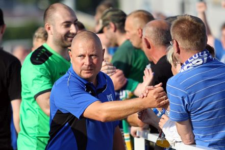 Tomasz Błotny. Walczyliśmy, prowadziliśmy, przegraliśmy. Tak bywa w sporcie. Zdecydowały błędy w obronie i skuteczność w ataku. Nie mam pretensji, zawodnicy którzy grali zrobili wszystko żeby wygrać. Nie udało się, ale dziękuje za zaangażowanie. Mieliśmy swoje sytuacje, gospodarze również. Kontuzja Przemysława Rygielskiego na pewno pokrzyżowała plany obronne. To dopiero początek sezonu, takie "uderzenie" musi dać zespołowi impuls. Gra w drużynie, to nie indywidualizm, każdy popełnia błędy, podkreślam: każdy. Nerwowości nie ma. Jedność zespołowa to podstawa, porażka nas uczy, taki jest sport który kochamy. Będę bronił swoich zawodników. Gospodarzom gratuluję zwycięstwa.