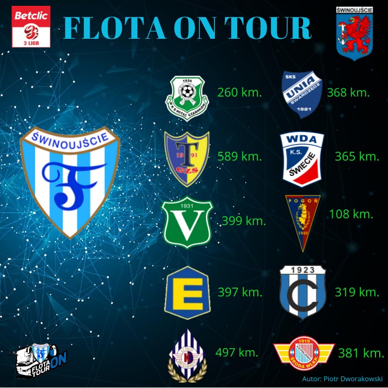 Liczba ligowych kontaktów z Flotą: 4 w I lidze i 4 w III